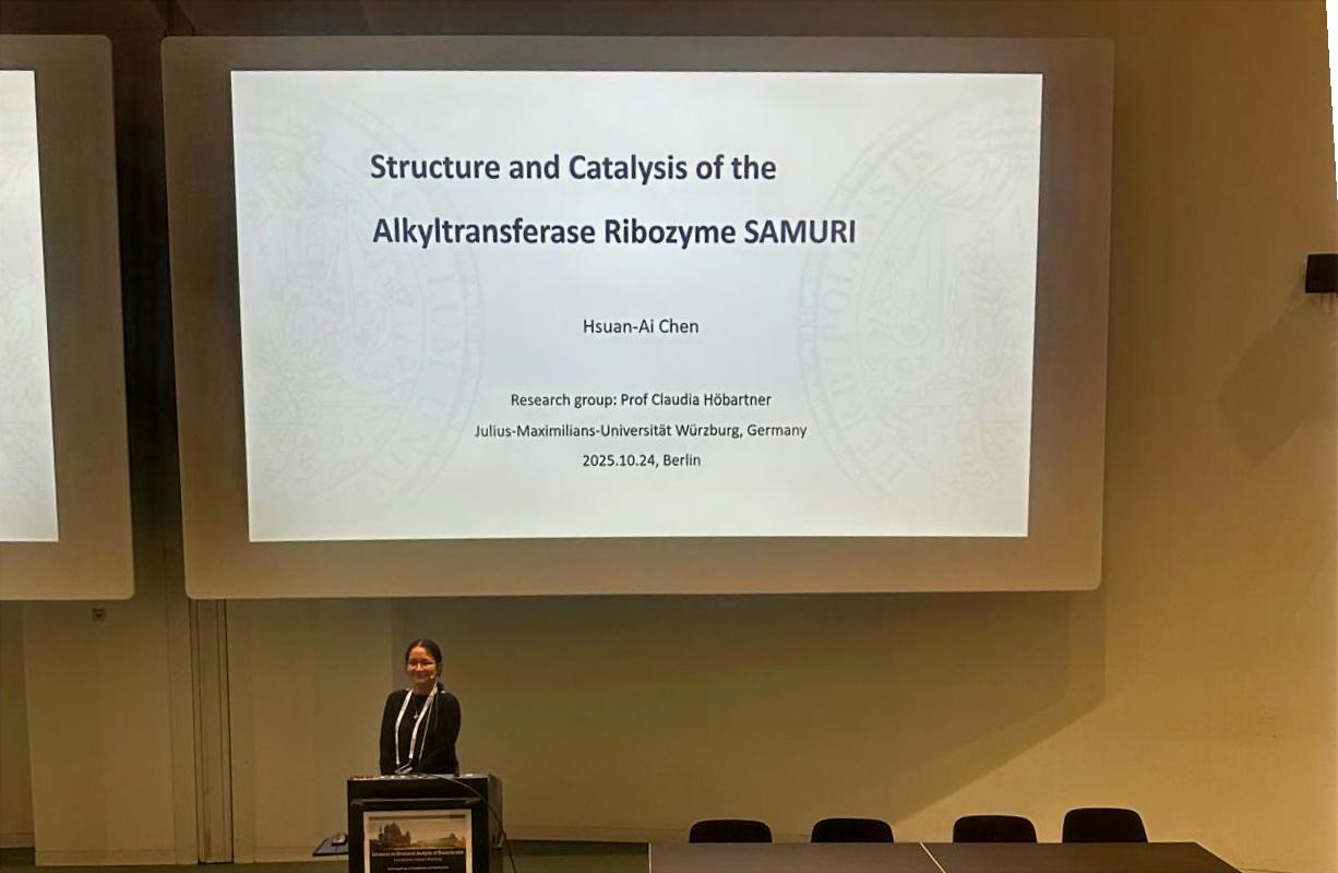 Hsuan-Ai was selected to present her work “Structure and Catalysis of the Alkyltransferase Ribozyme SAMURI” via oral communication and Maria received a lot of positive feedback and suggestions during the poster session on the topic “NMR and fluorescence spectroscopy of new RNA aptamer-ligand-complexes.”