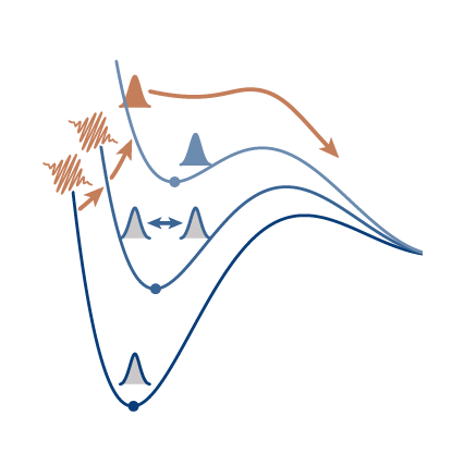 In physical terms, this happens because optical excitation with femtosecond laser pulses typically triggers a cascade of energy-conversion processes. Energy is first deposited into photoexcited electrons, then transferred to other electrons, from there to lattice vibrations, and finally redistributed through scattering among different vibrational modes. Only a small fraction of the original energy may end up in the specific degree of freedom one actually wants to control—for example, a particular type of atomic motion.