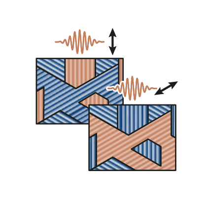 By additionally changing the polarization of the light, we gain further control and can choose which domains are excited. In this way, the degrees of freedom of light—such as wavelength and polarization—become powerful control knobs.