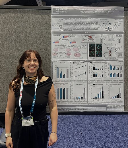 Eva Veh präsentierte beim Kongress SOT 65th Annual Meeting and ToxExpo, der vom 22. - 25.03.2026 in San Diego stattfand, ein Poster mit dem Titel Mutagenic Potential of Higenamine in Cultured V79 Cells.
