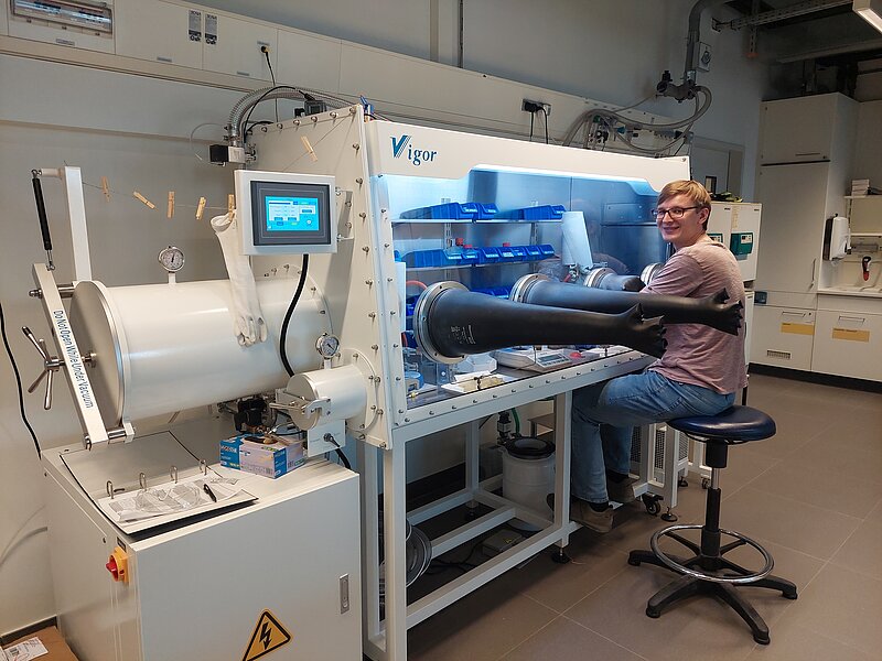 Our new double-station glovebox from Vigor has been installed, and Paul is already using it.